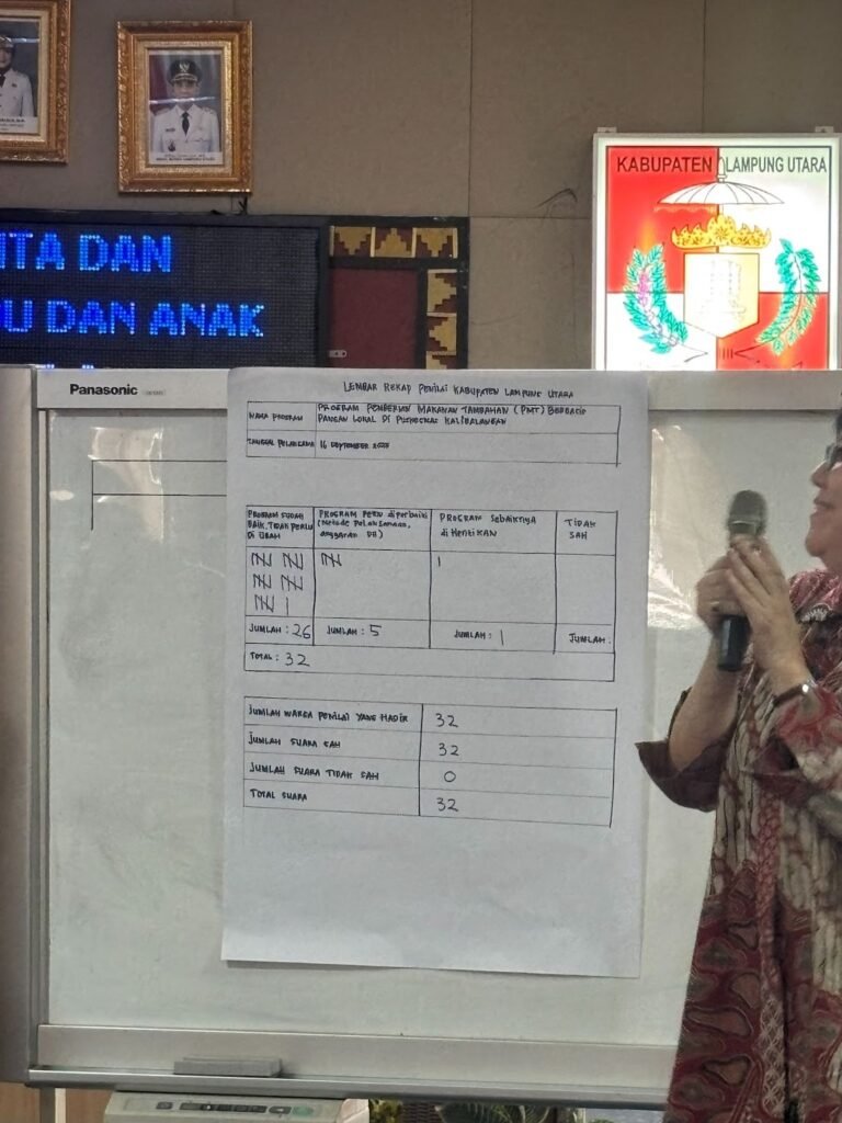 Inisiatif replikasi Program Review di Lampung Utara awalnya diinisiasi oleh Kepala Bappeda sebelumnya, Bapak Andi, dan kemudian dilanjutkan oleh kepemimpinan baru tanpa jeda. Keberlanjutan ini menjadi bukti kuat komitmen pemerintah daerah dalam memperbaiki kualitas perencanaan pembangunan dan pelayanan publik melalui keterlibatan langsung masyarakat dalam proses evaluasi. Dalam pelaksanaannya, dua program strategis daerah menjadi fokus evaluasi, yakni Program Pemberian Makanan Tambahan (PMT) Berbasis Pangan Lokal bagi Balita Gizi Kurang di Puskesmas Kalibalangan dan Program Pengelolaan Upaya Kesehatan Ibu dan Anak (KIA) dari Puskesmas Kotabumi I.