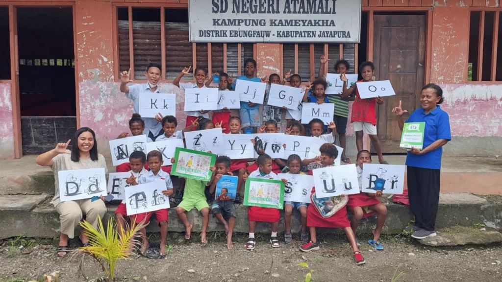 Melalui program literasi ini, masyarakat lokal menuliskan cerita anak dari budaya dan lingkungannya sendiri. Donasi mendukung pelatihan penulis, pendampingan, ilustrasi, hingga pencetakan buku bacaan anak.